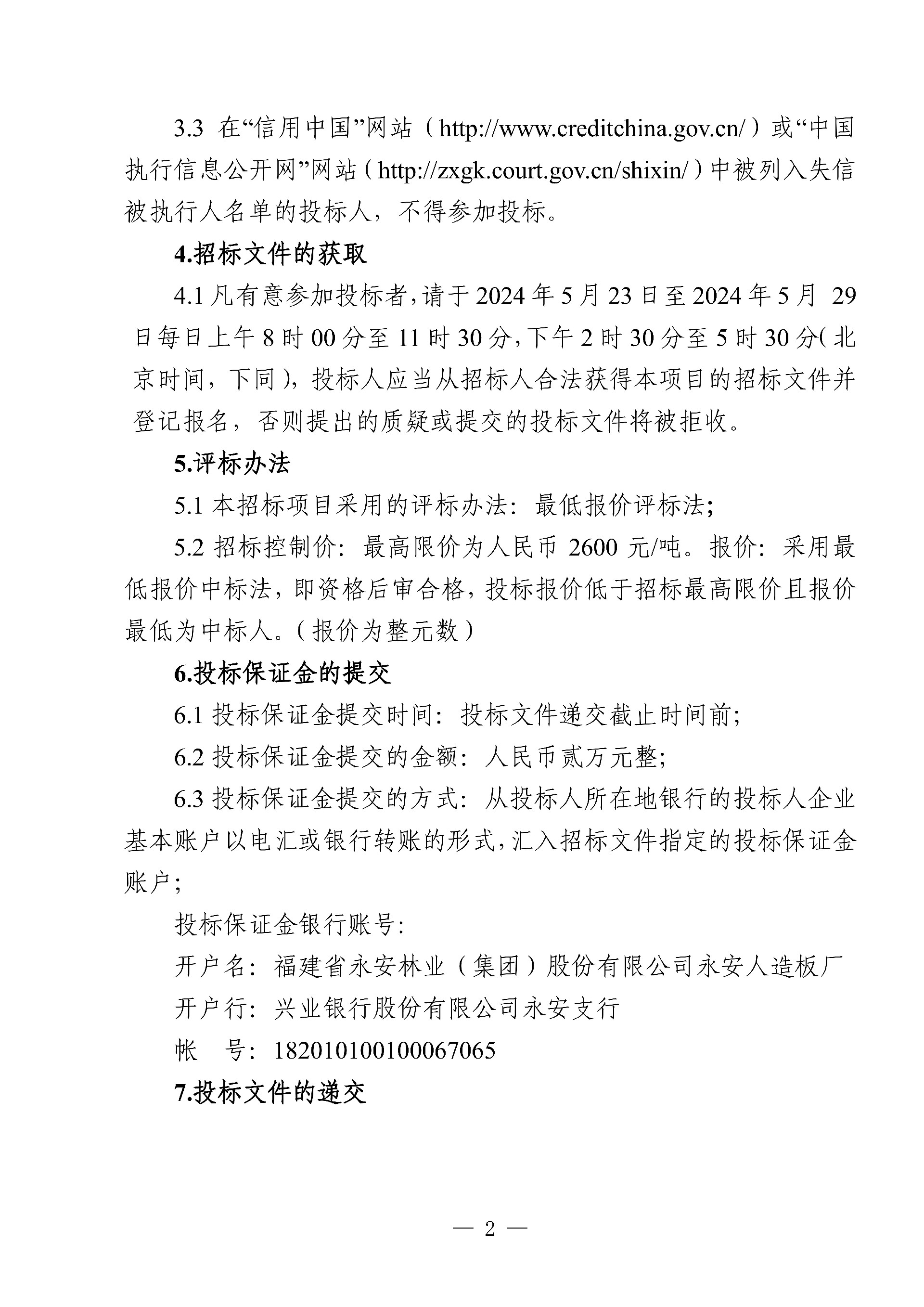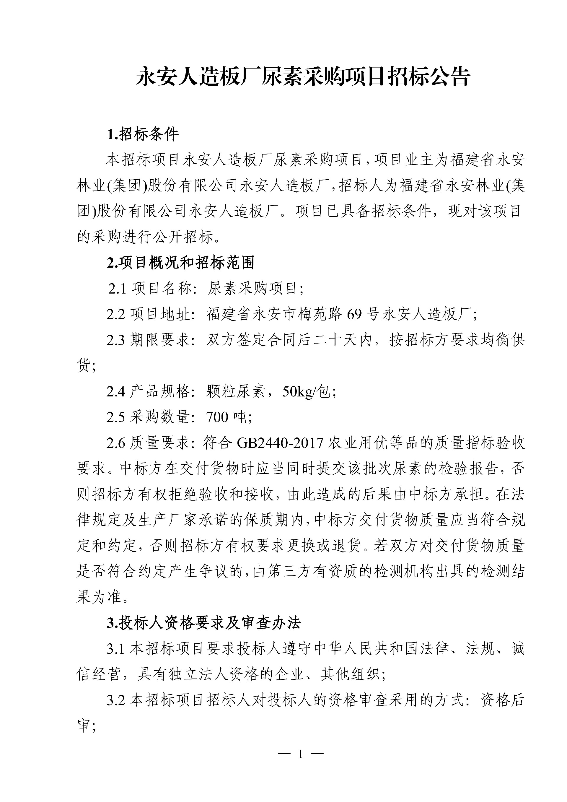 永安人造板廠三聚氰胺采購項目中標結果公告