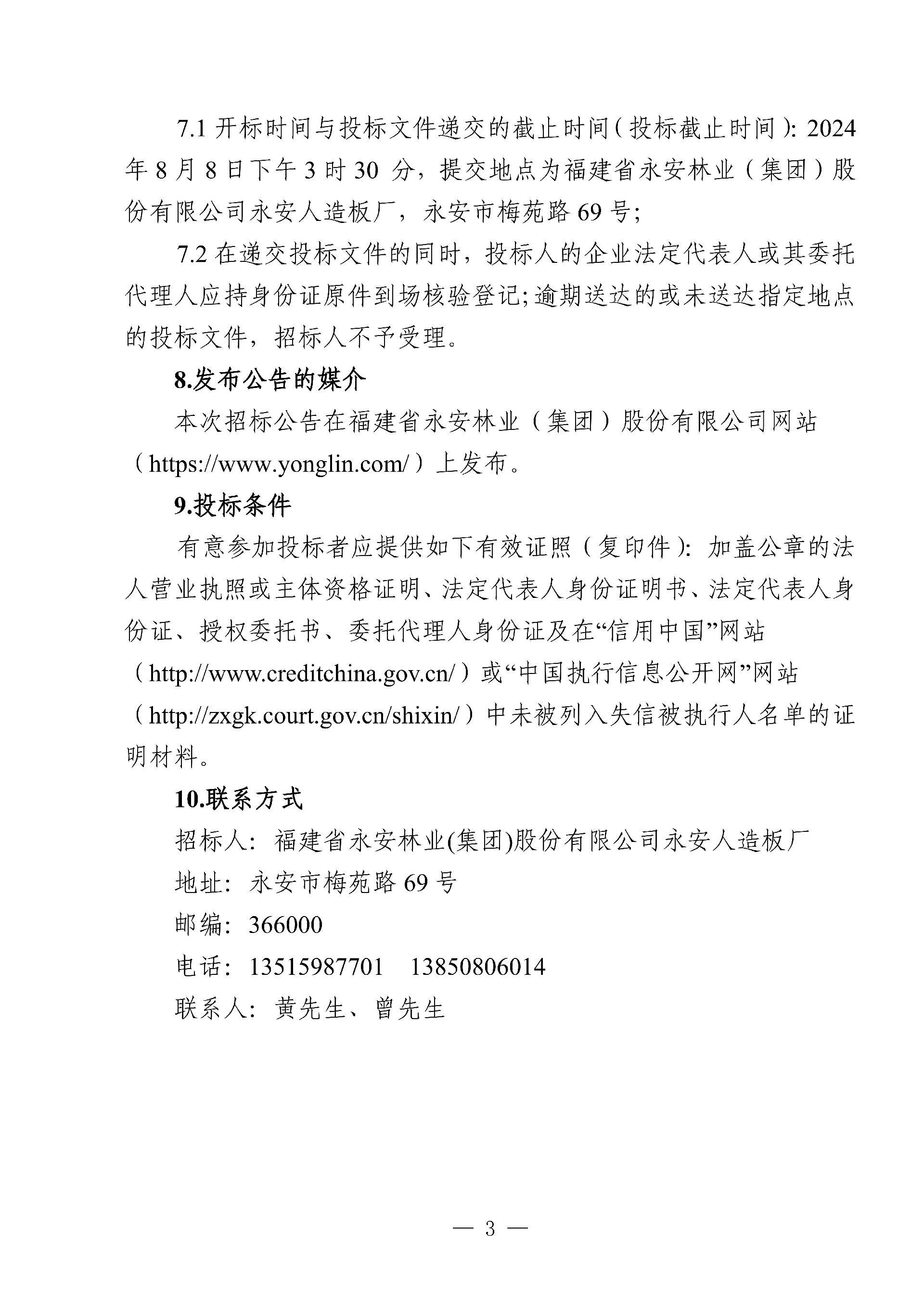 永安人造板廠三聚氰胺采購項目中標結果公告