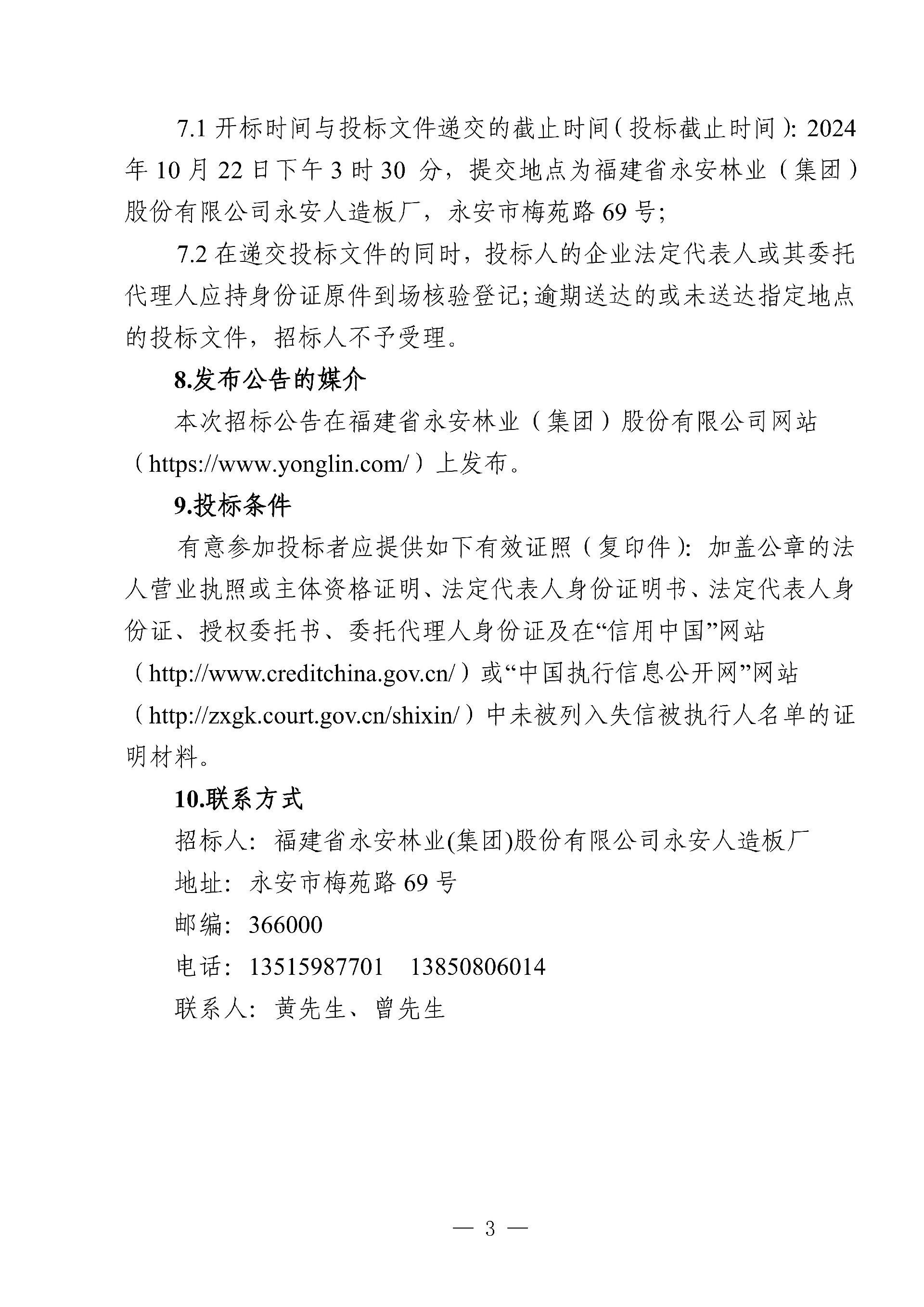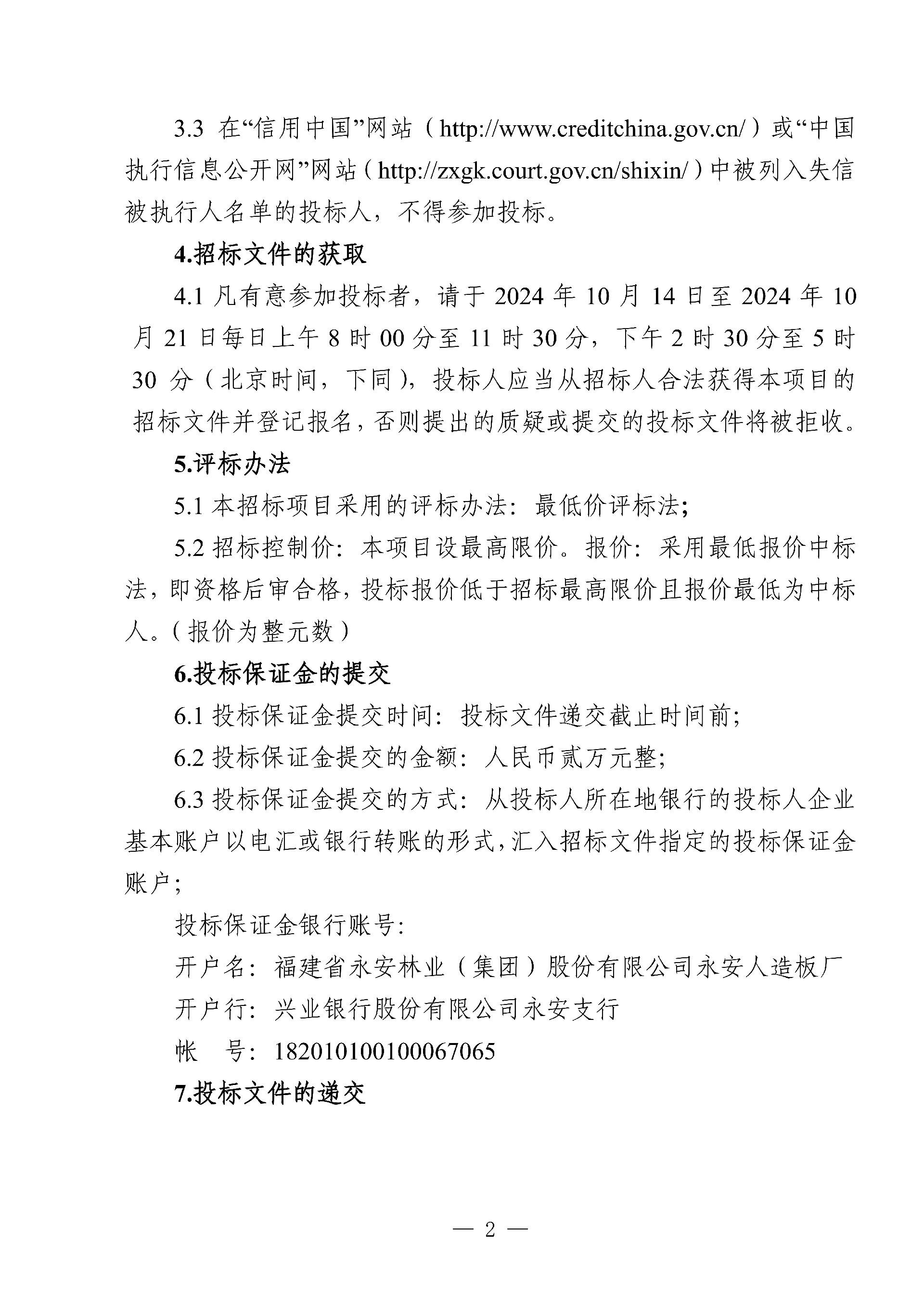 永安人造板廠三聚氰胺采購項目中標結果公告