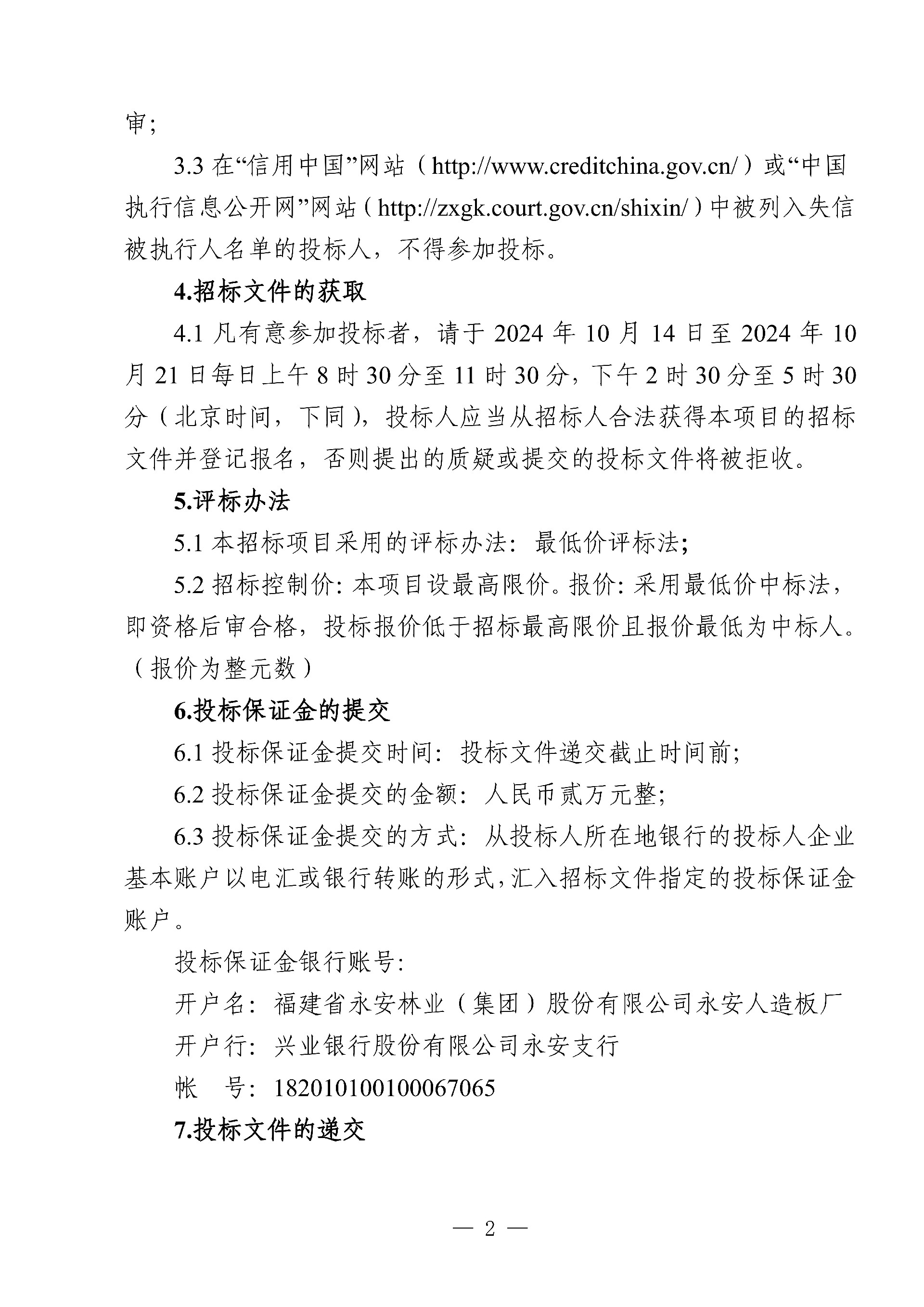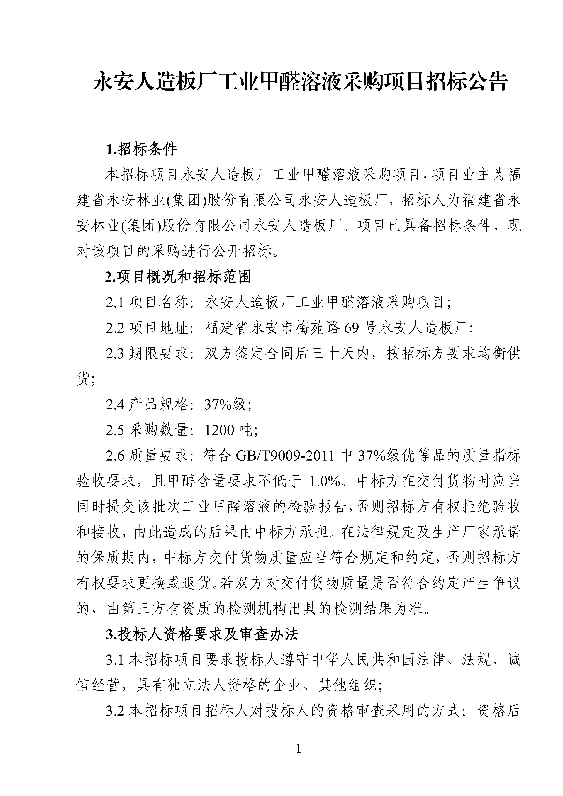 永安人造板廠工業(yè)甲醛溶液采購項目招標(biāo)公告