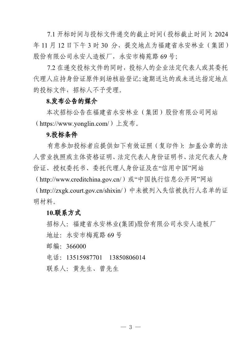 永安人造板廠三聚氰胺采購項目中標結果公告