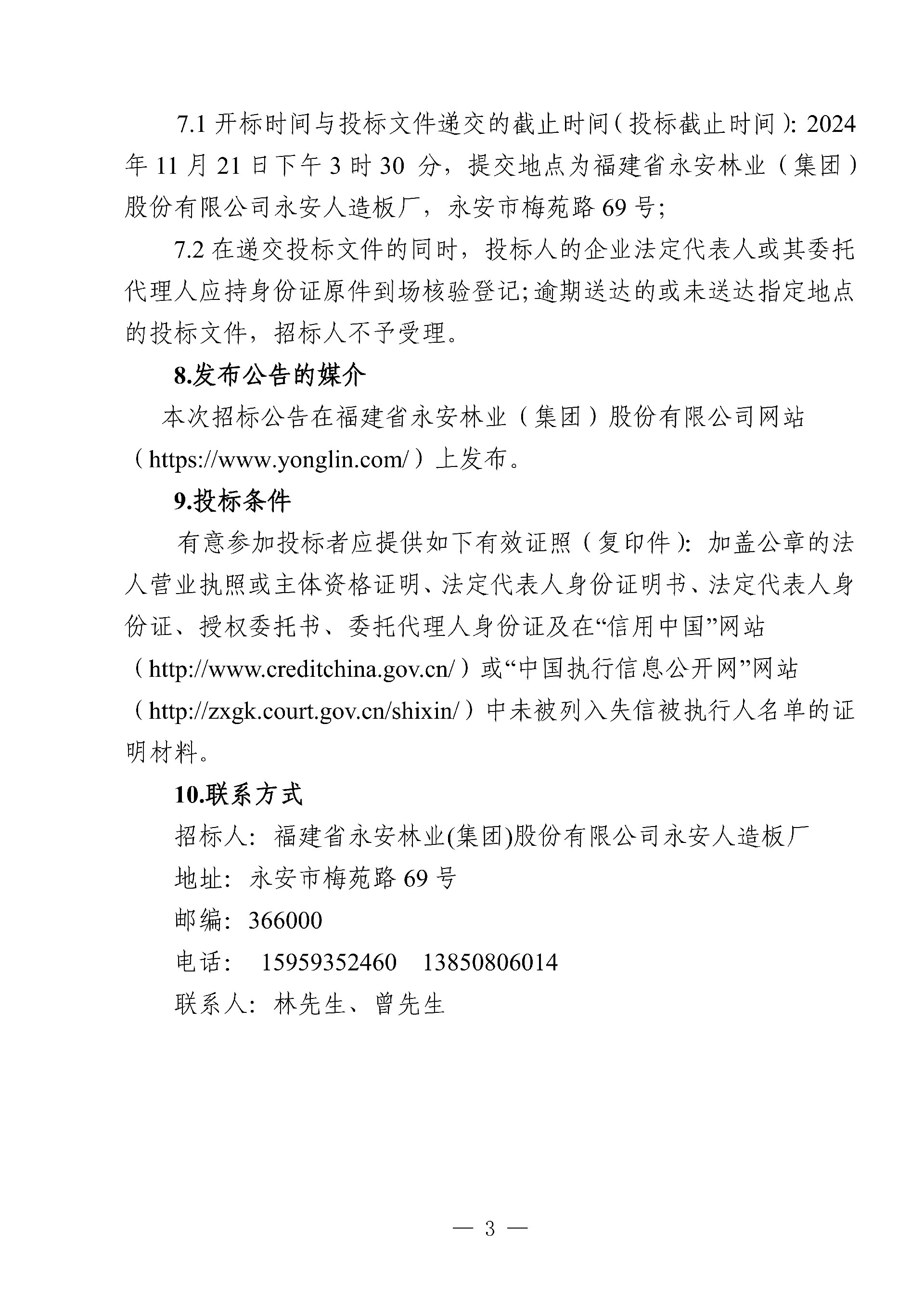 永安人造板廠尿素采購項目招標公告
