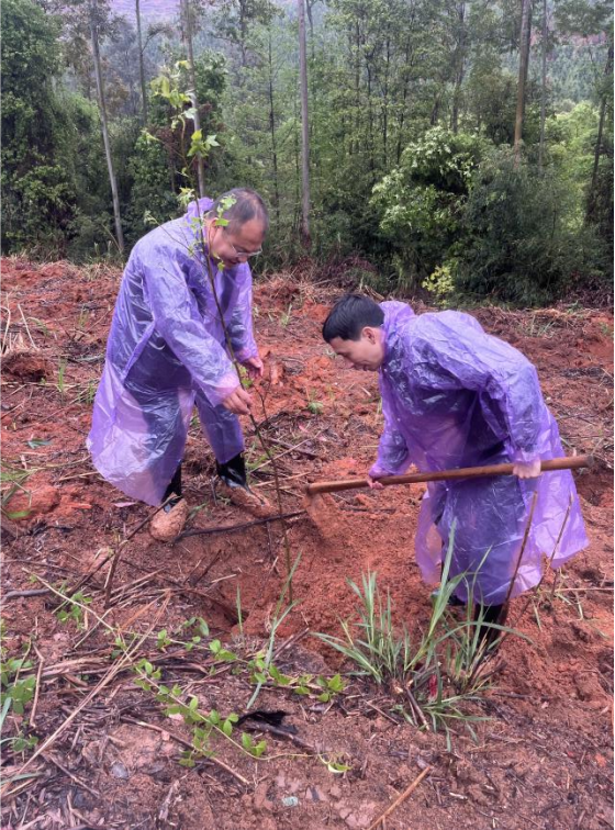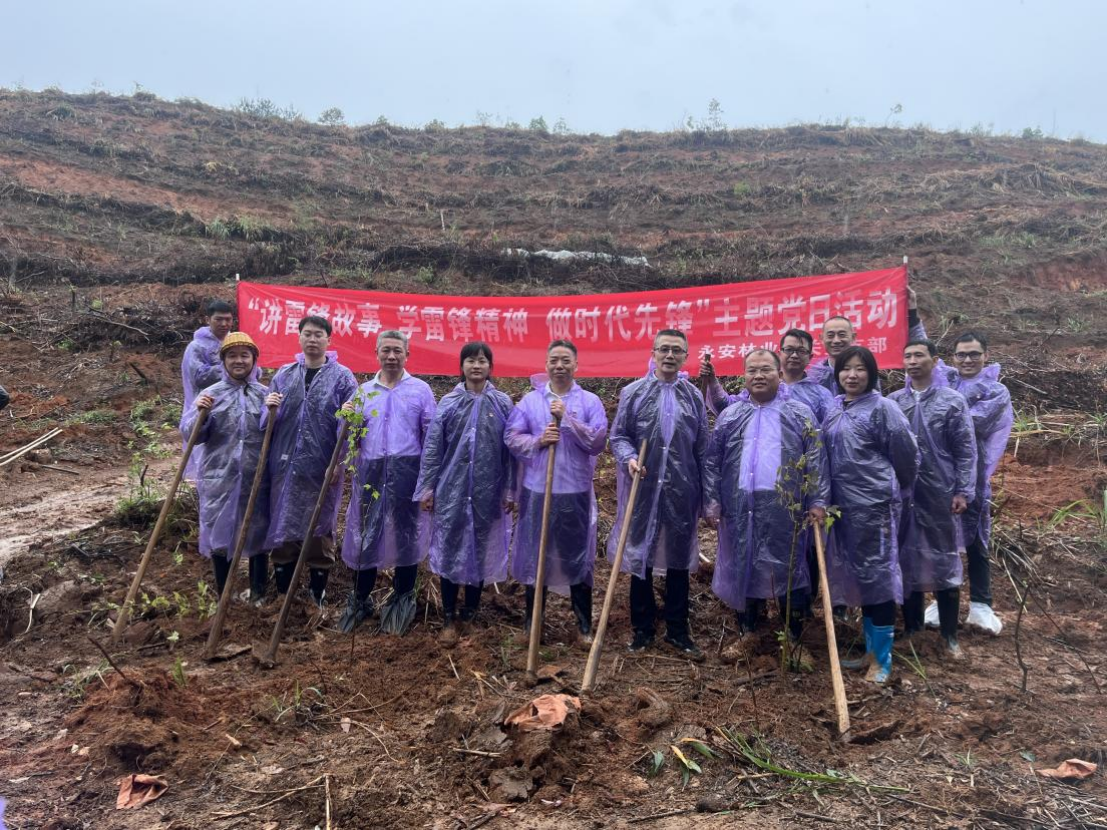 永安林業機關黨支部組織永安林業森經公司黨總支,開展“講雷鋒故事 學雷鋒精神 做時代先鋒”主題黨日活動。干部職工赴永安市大湖鎮嶺干村造林地,一同種植楓香。綿綿陰雨澆不滅干部職工們的熱情,經過數小時團結協作,一株株風香幼苗茁壯地挺立于大地,寄托著永林人守護綠色、修復生態的美好愿望,也代表著永林人以實際行動踐行“綠水青山就是金山銀山”理念、傳遞學雷鋒精神,為美麗中國增添一抹抹新綠。